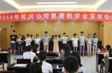 2014年8月22日,虹潤公司一年一度的“圓夢助學(xué)行動”捐資助學(xué)儀式在虹潤科技園辦公大樓四樓禮堂隆重舉行。順昌縣委副書記易才卿、順昌縣關(guān)工委主任黃春娣、順昌縣政協(xié)副主席黃為雄、順昌縣文體局局長李元生、團縣委書記吳詩源、順昌縣工會副主席蘭榮妹、虹潤公司董事長林善平以及相關(guān)部門領(lǐng)導(dǎo)出席了儀式。