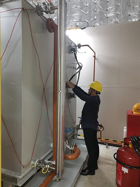 11月7日凌晨6點(diǎn),東方剛露出魚肚白。孫利勤踏著晨露,帶著虹潤產(chǎn)品和測試安裝設(shè)備馬不停蹄來到了珠海港口,經(jīng)過2個多小時的海上跋涉,終于到了海上風(fēng)電升壓站現(xiàn)場,對于客戶提到的技術(shù)要求,孫利勤先是對現(xiàn)場環(huán)境進(jìn)行測試和判斷,與客戶認(rèn)真溝通制定了技術(shù)應(yīng)用方案,并于次日成功安裝。虹潤儀表現(xiàn)場表現(xiàn)良好,對海上升壓站TC690L柴油發(fā)電設(shè)備液位控制精度高且運(yùn)行穩(wěn)定,得到了客戶的好評。解決了客戶的技術(shù)需求,虹潤人的心也放下了,這次跨越大海的技術(shù)服務(wù)終于不辱使命。